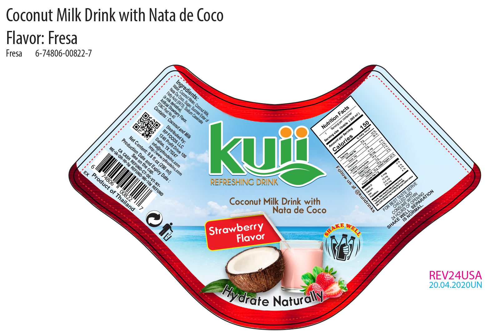 Kuii’s Strawberry Coconut Milk is for the flavor-seeking, coconut enthusiast. A tropical blast in a bottle, Kuii Strawberry Coconut Milk brings lush strawberry and creamy coconut together to create a perfectly balanced, refreshingly bold flavor.